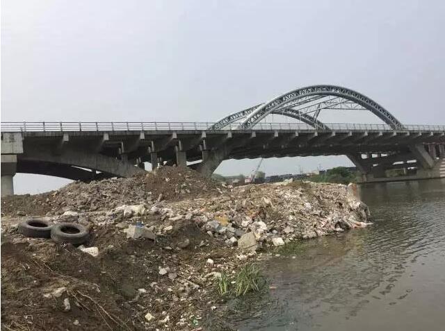 江蘇海門新江海河內(nèi)偷倒大量建筑垃圾的現(xiàn)場