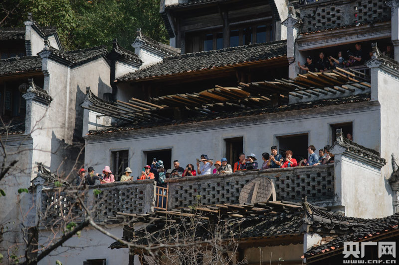 金秋十月,篁嶺的秋色已經十分濃烈,在這個近六百年歷史的徽式村落上,曬滿了色彩斑斕的曬盤,層層疊疊,十分壯觀。隨著入秋時間漸長,村落的美國紅楓葉子開始轉紅,粉墻黛瓦在色彩斑斕的葉子掩映下,如中國山水畫般詩情畫意。秋天的陽光里,這個建在懸崖上的美麗山村,將鄉村旅游的風采徐徐展開,帶給國外朋友最美的小鎮風光和民俗文化。