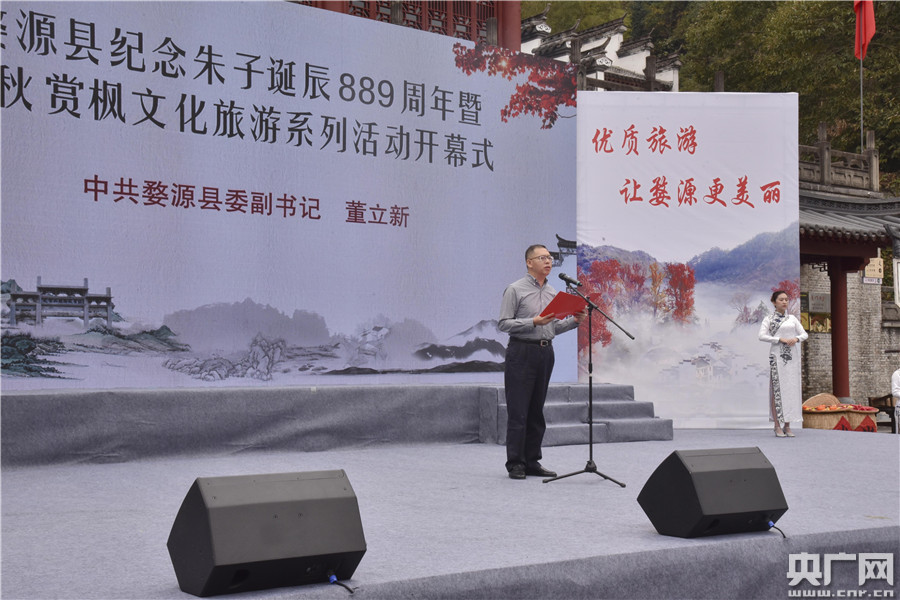 央廣網婺源10月25日消息 10月25日,紀念朱子誕辰889周年暨曬秋賞楓文化旅游系列活動開幕式在婺源文公山景區舉行。