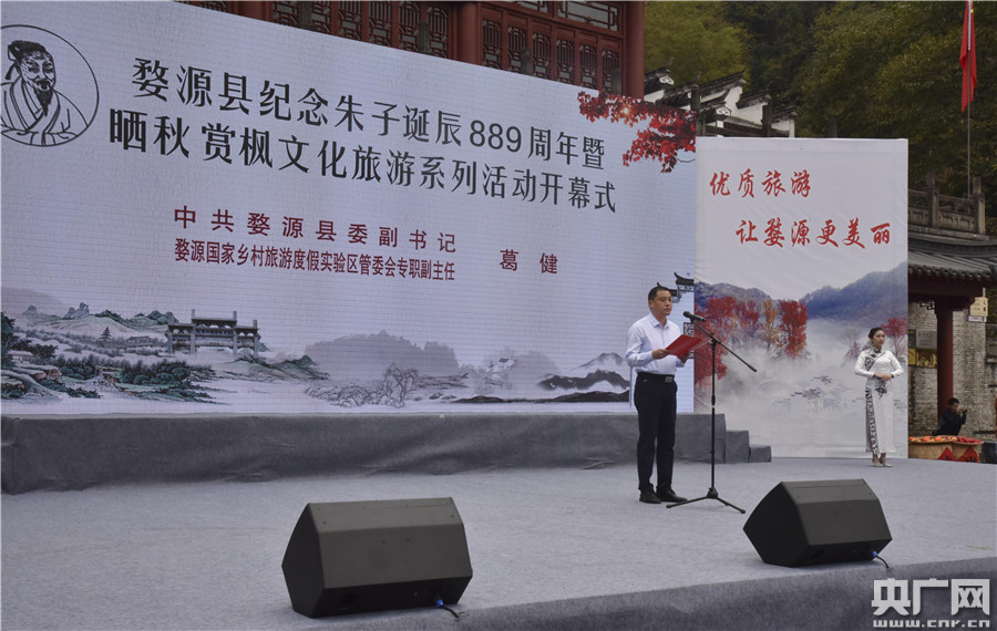 婺源縣委副書記、婺源國家鄉村旅游度假實驗區管委會專職副主任葛健宣布紀念朱子誕辰889周年暨曬秋賞楓文化旅游系列活動主要活動內容
