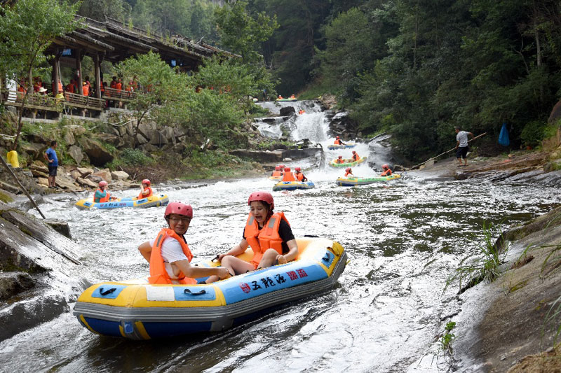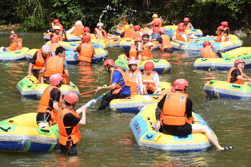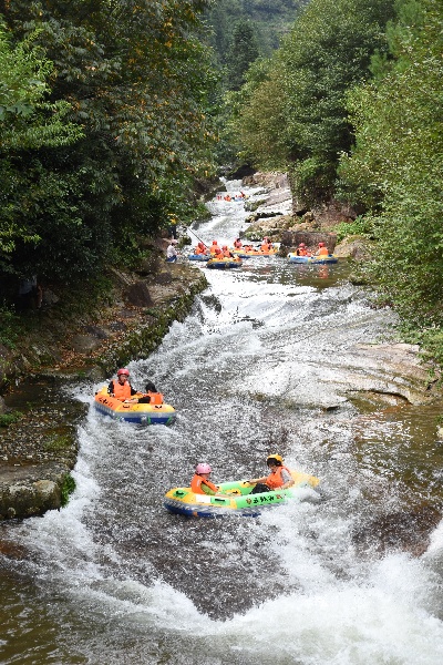 近日,江西多地持續高溫,位于婺源縣的五龍源極限漂流景區迎來旅游高峰,眾多游客前來體驗親水漂流項目,樂享夏日清涼。