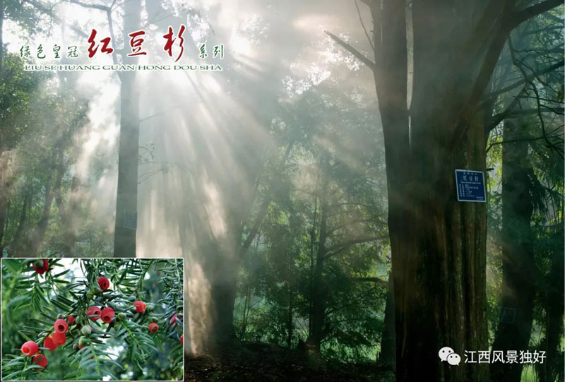 銅鼓是中國南方紅豆杉之鄉,全縣紅豆杉總數有80多萬株,直徑10厘米以上的約50萬株,且樹齡在1200年的達上千株。銅鼓紅豆杉的數量之多、群落之大,非常罕見,堪稱“南方紅豆杉王國”。經國家林業局、北京大學、北京師范大學的專家聯合考證,銅鼓花山紅豆杉景區是迄今為止全國最大的紅豆杉景區,也是全世界迄今有記載的最大原始野生紅豆杉生態群落。景區內野生紅豆杉面積達10512公頃,直徑10公分以上的南方紅豆杉有40萬株以上,最大單株米徑達1.64米、樹齡在1200年以上,四人合抱不下,被譽為“千年紅豆杉王”。