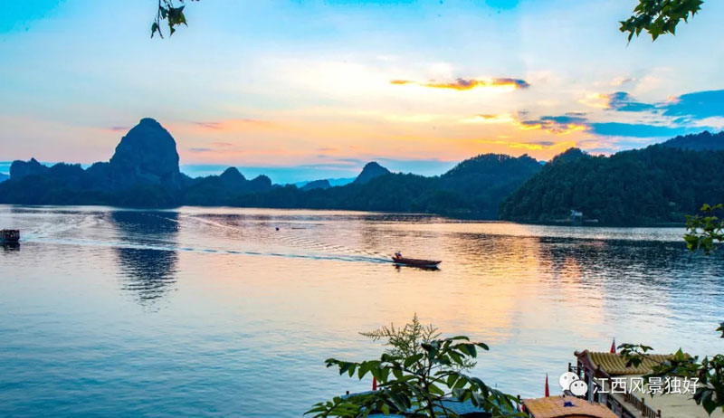 天柱峰景區樹叢郁蔽、丹霞紅巖、群峰聳翠、流泉飛瀑點綴其間,其以“峰險、水秀、石異”特色而聞名,景區綿延12公里水上丹霞地貌,森林覆蓋率高達95%。天柱峰形同天柱、三面環水,海拔高度401米,屹立于景區中央,有“修河第一峰”之美譽。有名家曰:天柱峰頂眾山小,象鼻山下兩線天;九龍湖畔春花秋葉,官山絕頂夏鵑冬雪。
