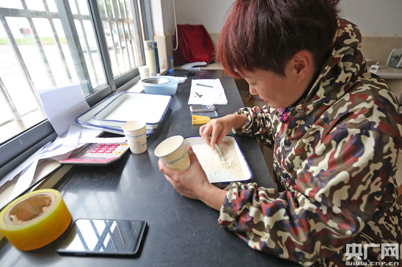 正在做糧食質量指標檢測(央廣網發 通訊員劉家 攝)