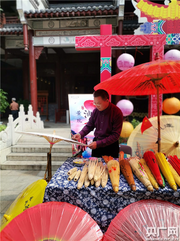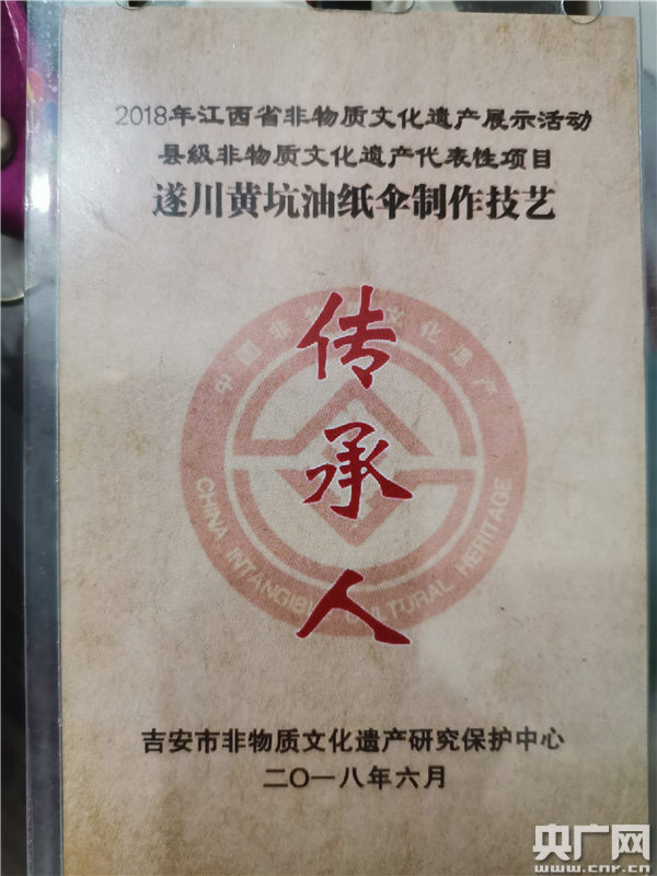央廣網遂川10月4日消息(記者胡斐 通訊員劉祖剛)在吉安市廬陵人文谷展出了三天后,10月3日晚,遂川縣黃坑鄉油紙傘非遺傳人胡海華驅車回到了位于井岡山市天街的工作室。