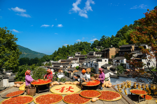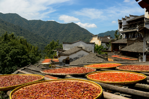 從立秋開始,篁嶺古村將進(jìn)入一年紅火的曬秋季,隨著農(nóng)作物的成熟,曬秋景觀也愈發(fā)壯觀,色彩愈發(fā)豐富,可持續(xù)到冬至?xí)r節(jié)。(圖文/方華彬)