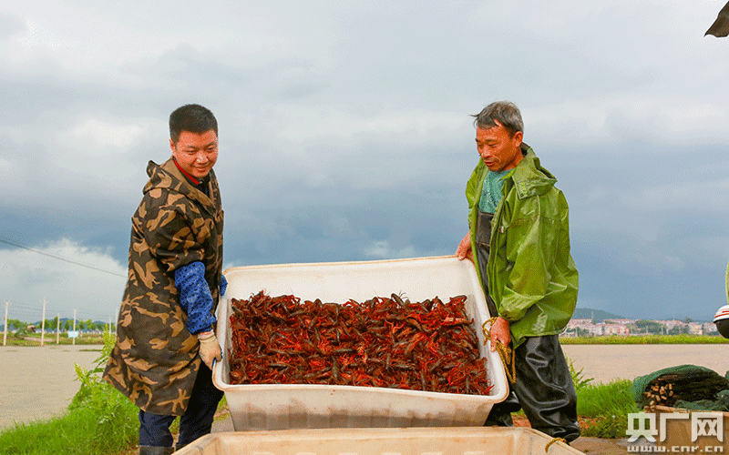 江西省吉安市吉水縣醪橋鎮元石村稻蝦共作基地,村民正在分揀小龍蝦