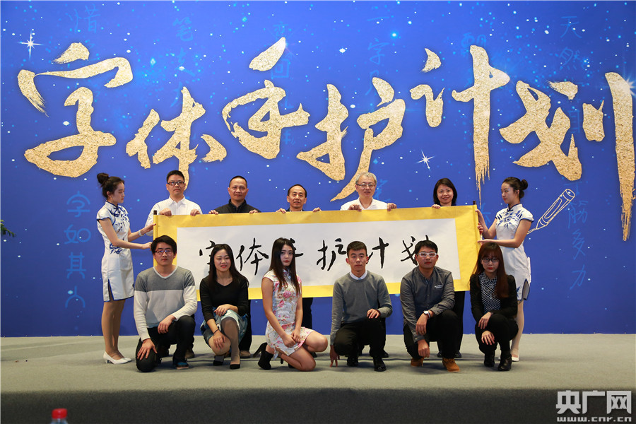 央廣網北京1月12日消息 昨日(11日),由方正手跡發起的“字體手護計劃”首屆年度分享交流會在北京大學舉行。教育部語言文字信息管理司司長田立新、著名書法家葉培貴、中央人民廣播電臺央廣網副總編輯伍剛、方正集團副總裁劉建應邀出席,與現場大學生代表一起分享了有關漢字文化傳承的新形勢、新方法。圖為與會專家學者與6位“字體手護大使”一起啟動“2017字體守護計劃”。 -