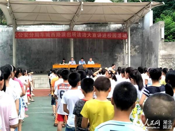 人民網十堰7月7日電 正值暑假來臨之際,為提高廣大師生法制觀念和安全防范意識,確保暑假期間出行安全,連日來,十堰張灣公安局陸續在轄區中、小學全面、深入地開展以“防水、防火、防電、防盜、防騙、防毒、防拐”為主題的“七防法制宣講進校園”暑期安全教育活動。目前,共發放宣傳資料2萬余份,舉辦教育報告會18場次。