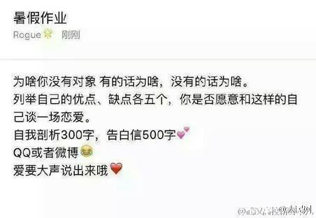 據網友爆料湖北工業大學老師布置暑假作業,要求學生寫一封500字告白信,并談一場戀愛。學生說:“輔導員一言不合就開始虐狗逼我找對象系列,還要大聲說出來,這是一道送命題。”