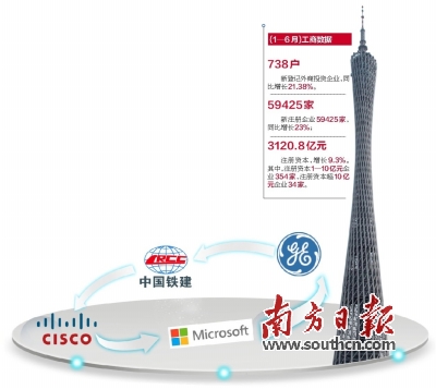 今年上半年,廣州招商繼續(xù)發(fā)力,包括世界500強(qiáng)企業(yè)、央企和重點(diǎn)民企在內(nèi),一大批重大項目紛紛簽約或即將進(jìn)駐。從工商登記數(shù)據(jù)看,1—6月全市新注冊企業(yè)59425家,同比增長23%;注冊資本3120.8億元,增長9.3%。其中,注冊資本1—10億元企業(yè)354家,注冊資本超10億元企業(yè)34家。