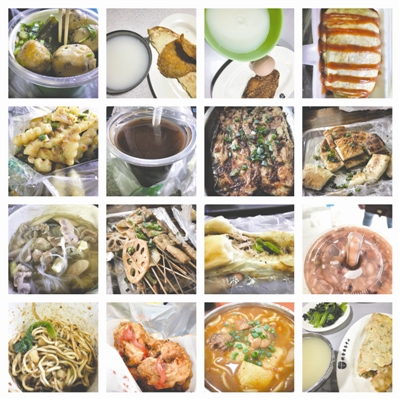 金黃色的雞蛋仔蓬松地裝在袋子里;海味的清湯抄手上撒著青翠的蔥花;半個切開的鹵蛋像一艘小船靜靜地停泊在一碗鹵肉面上;小火鍋的紅油中豐富的食材微微翹首……