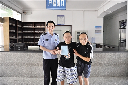 安排好一切后,6日一大早,龔小兵便開車來到小峰家附近,和胡仁明一起將小峰扶上車,隨即上路。一路上小峰非常興奮,而龔小兵卻眉頭緊鎖,因為從重慶到渠縣臨巴派出所來回有400多公里,包括100多公里山路,一個急剎、一個轉彎都可能給小峰造成傷害。“我開車的時候眼睛都不敢眨一下,生怕出問題。”龔小兵說,好在一路順利,到臨巴派出所后只花了十幾分鐘就辦好了相關手續。