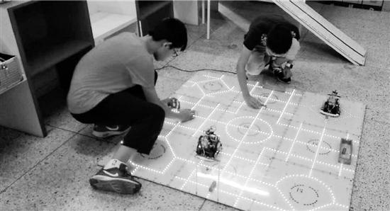 “路線有問題,還需要調整。”很快,他們又竄進隔壁的計算機房,啪啪啪敲打鍵盤,調整機器人的編程代碼。