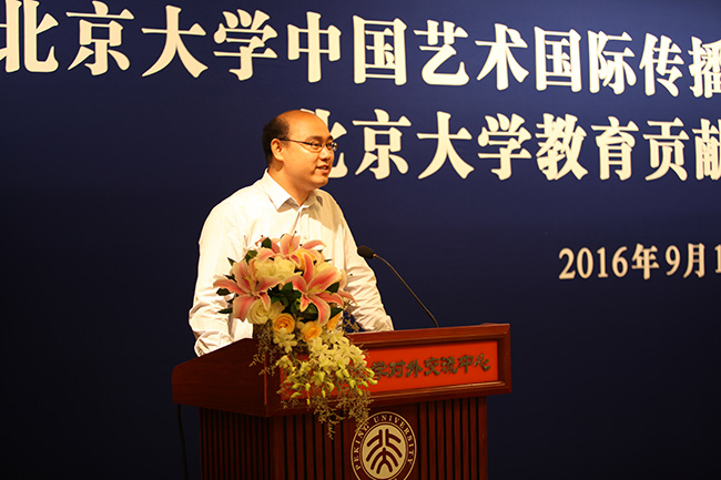 胡俊副秘書長在致辭中指出,教育的可持續(xù)發(fā)展得益于社會各界的支持,國家和北京大學雖然對中國藝術國際傳播等學科提供了基本的支持,但更希望在社會多方的共同支持下,通過“中國藝術國際傳播基金”促進該領域的學術發(fā)展,為國家培養(yǎng)更多的優(yōu)秀人才。