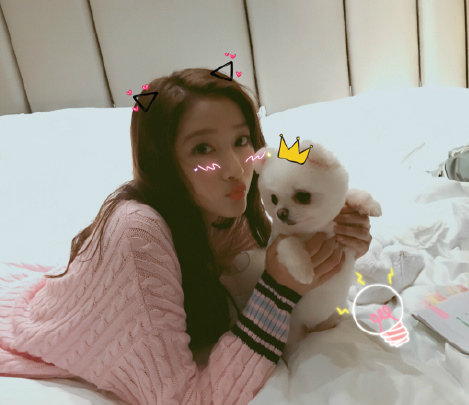 假期最后一天關曉彤很滋潤 吃流沙包逛街玩狗
