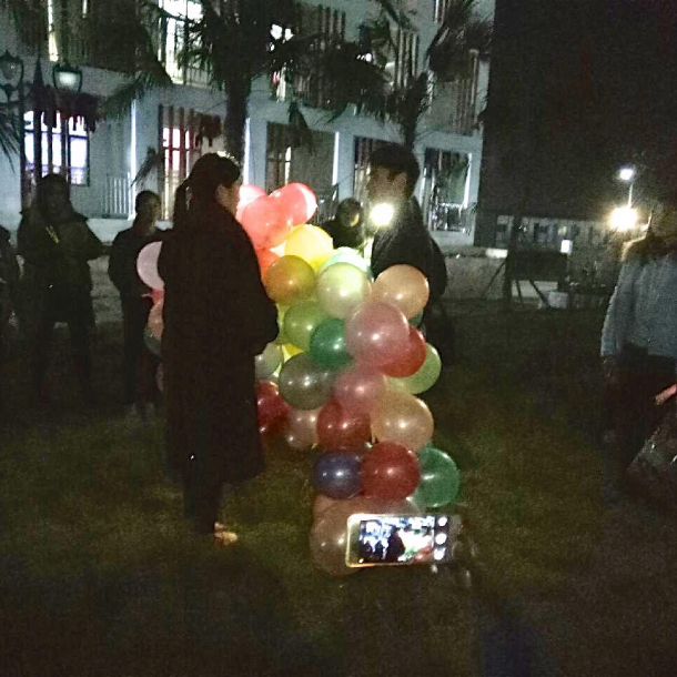 11月15日晚,廣西大學(xué)一男生打算告白,將蠟燭點(diǎn)好擺了個美美的形狀,燈火璀璨,接下來的劇情本來是“那人就在燈火闌珊處”的浪漫,結(jié)果女主還未出現(xiàn),保衛(wèi)處大叔卻先出現(xiàn)了,于是男生被保衛(wèi)處大叔帶走了。