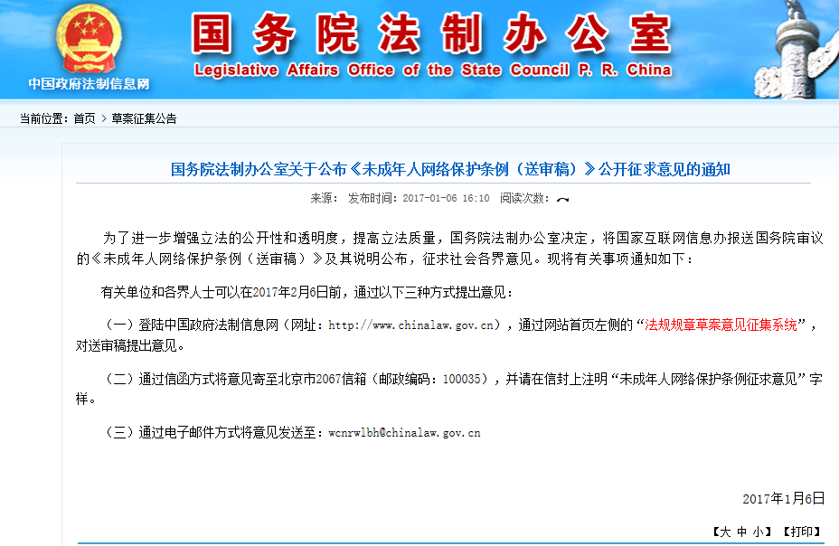 “凡法始立必有病”。正如天空海洋因風浪而動,網絡的誕生使未成年人權益保護遭遇新情況。據統計,截至2016年6月,我國網民規模達7.1億,其中青少年網民(19歲以下)約占全體網民的23%,達1.6億。這個新興領域里,未成年人雖是原住民,卻也遭受著權利受損、個人隱私泄露、網絡詐騙、網絡欺凌、上網成癮等一系列問題。同時,不良網絡信息和低俗網絡游戲對青少年的腐蝕和侵害,也從一定程度上致使未成年人網絡犯罪頻發,網絡暴力愈加嚴重。青少年是初升的紅日,是家國的希望,不爭的事實面前,制定《未成年人網絡保護條例》迫在眉睫,更是無數青少年和家長的心聲。