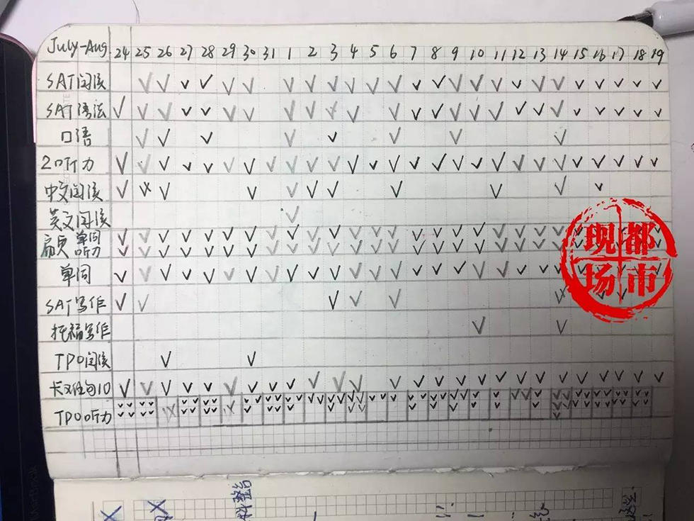 陳子欣說,她什么時間做什么事情,每天做的事情都會列好,每一個時間點做什么,在幾點之前要結束,嚴格執行,做完就劃掉。