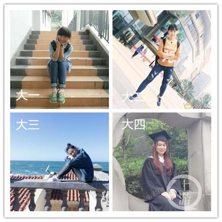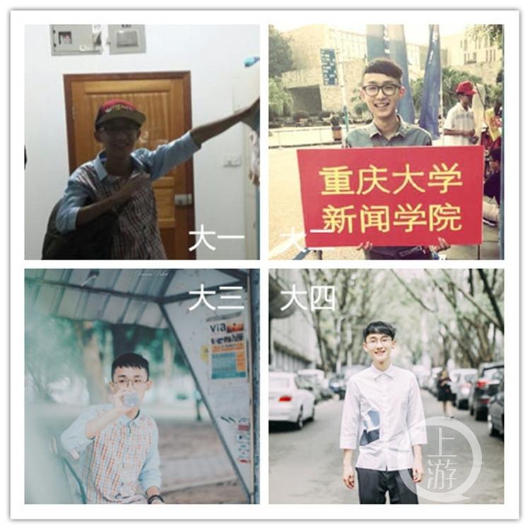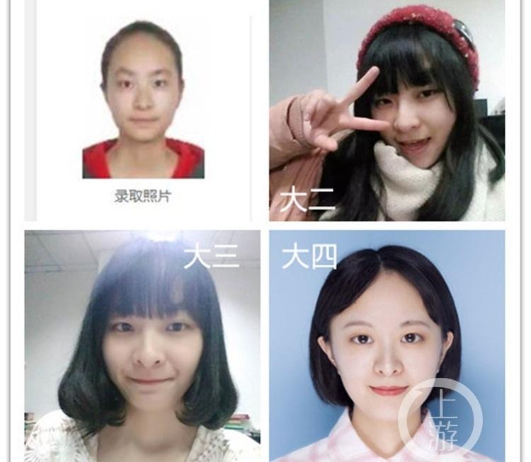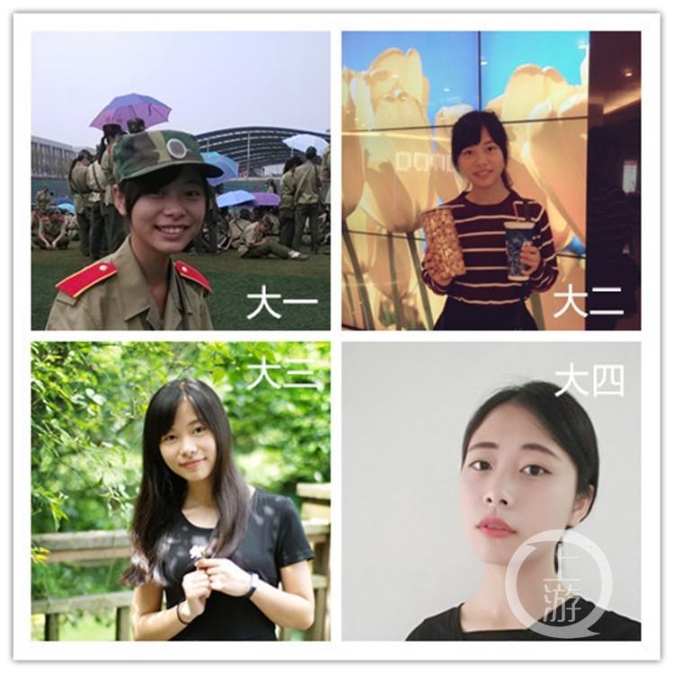 •   近日,重慶多所高校的畢業生,用四年的照片來記錄大學四年的成長痕跡,引發網友感嘆。圖為西南大學秦文琰,不僅樣貌如同換了個人一般,學習更進一步,現已保送到武漢大學新聞與傳播學院。
