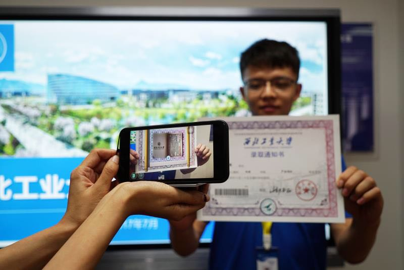 “新生錄取通知書雖然只是一張紙,但精心嵌入的AR技術,是為了通過其展現一種前沿的氣質、一種自豪的傳遞;精心編制校情校史及學科特色等主題內容,更是一種感情的投入、一種精神的傳承及一種希望的寄托,將錄取通知書衍生為學校為新生送去的專屬禮物。AR錄取通知書不僅讓錄取信息‘動’了起來,更通過新媒體新技術使學校育人工作‘活’了起來,提前了創新大門的開啟時間,豐富了創新基因的傳承渠道。”西北工業大學招生辦公室副主任謝丹說。