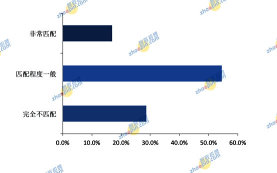 進(jìn)一步調(diào)查發(fā)現(xiàn),海歸群體對當(dāng)前工作崗位與其海外所學(xué)專業(yè)的匹配度偏低,認(rèn)為非常匹配的僅為16.9%,認(rèn)為匹配程度一般的為54.5%,認(rèn)為完全不匹配的占28.6%。根據(jù)智聯(lián)招聘此前發(fā)布的《2017年大學(xué)生求職指南》數(shù)據(jù)來看,有38.5%的國內(nèi)大學(xué)生存在與專業(yè)不對口的情況。看來,不論是國內(nèi)的大學(xué)生,還是海歸群體,均存在專業(yè)不對口的情況。