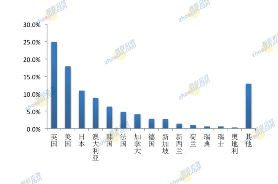 在最近一次的留學(xué)國家分布比例來看,英國、美國、日本、澳大利亞、韓國位列前五名,占比分別為24.9%、17.9%、10.9%。8.8%、6.3%,以上國家是我國留學(xué)生的主要目的地國,擁有全球優(yōu)質(zhì)教育資源。法國和加拿大的占比也均超過4%。其他國家占比均低于3%。