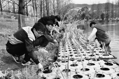 浙江農林大學學生水上種草清除水污染