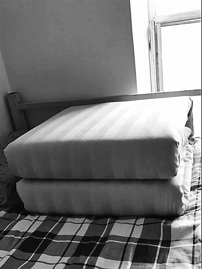 而在一些學校,隨意使用“疊被神器”,一旦被發現,學生要承擔相應后果。一名來自長春建筑學院的學生告訴北青報記者,“去年有新生被發現用‘疊被神器’后,東西被沒收了,學生本人也被輔導員教育了,要扣分的。”一名山東科技職業學院的學生告訴北青報記者,9月3日,學校發過通知,不讓學生使用“疊被神器”,“你用了,對別人來說就是不公平的,而且你的被子疊的過分整齊,檢查內務的老師會特意檢查一下,伸手一抖就知道了。”