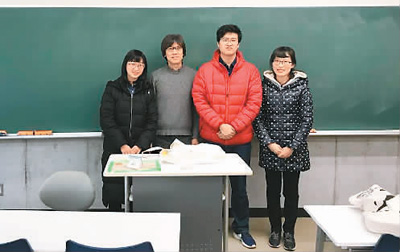 呂家樂原以為留學生活會比較寂寞,但是他結識到的各國朋友都很友善。圖為呂家樂(右二)和老師、同學在寫作課上的合影。