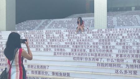 畢業(yè)生在情話階梯上留影。