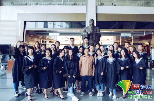 財務管理2017屆1班畢業生與張景海的合照。中國青年網通訊員 張景海 提供