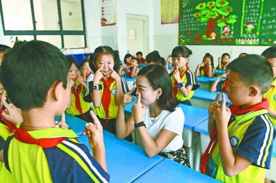 29日,貴州省仁懷市鹽津小學學生在老師帶領下做眼保健操 新華社發