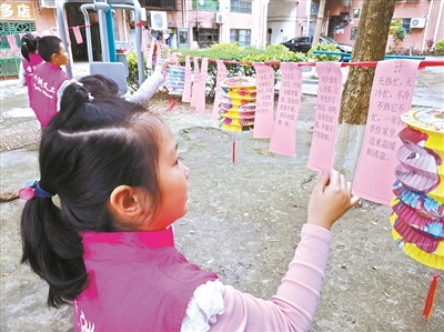 南坑社區(qū)“快樂四點(diǎn)半”課堂元宵節(jié)組織孩子猜燈謎活動(dòng)。