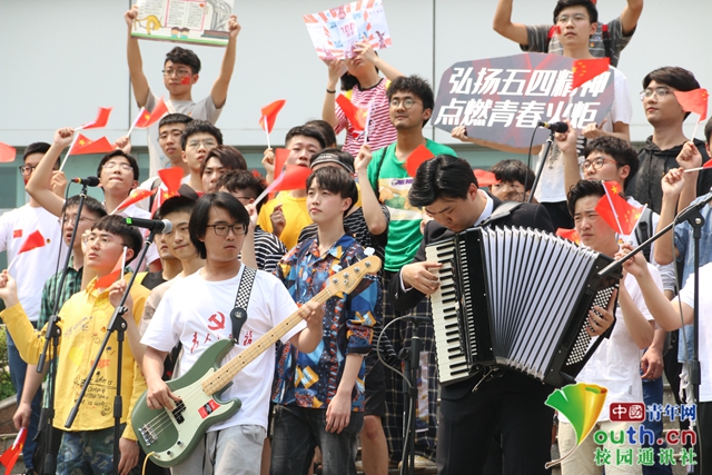 4月27日,四川農業大學團委主辦,大學生藝術團電聲樂團、管樂團、民樂團和演唱團承辦的“新長征路上的搖滾”快閃活動舉行,超燃的樂隊,悅耳的歌聲,恢弘的管樂,曼妙的舞姿和清新的民樂先后演繹,藝術表演交織、交融,對國家的深情貫穿始末。三百余名同學駐足參與,他們揮舞著現場的國旗,舉起愛國標語,詮釋著川農學子的愛國情懷,向百年前的五四先驅致敬,向繁榮昌盛的偉大祖國點贊。