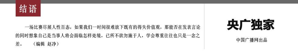 * 報紙就“恥辱”一詞向周俊致歉:上場已是英雄 今日早報發文致歉:其實,我們已經知道你足夠努力,我們更知道你還只是個孩子,但卻忽略了勝敗乃常事,體育競技中體現出的追求更高、更快、更強的精神才是最為寶貴的要旨。你既已上場,并全力以赴,已是我們的英雄。周俊妹妹,我們為我們的低級錯誤鄭重向你道歉,并盼你以后的路越走越好,最重要的是,要快樂,我們會一直為你守望。 【詳細】