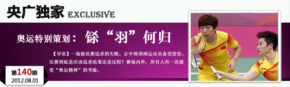 * 中國羽毛球頭號女雙組合“讓球”敗給韓國 現場遭噓 在31日的倫敦奧運會羽毛球女雙小組賽A組最后一場比賽中,世界排名第一的中國組合于洋/王曉理以14:21和11:21爆冷不敵韓國組合鄭景銀/金荷娜,由于雙方在場上失誤頻頻,擊球不是出界就是下網,比賽時溫布利體育館內噓聲四起,F場的觀眾則很不理解:“雙方在國際水平以下,簡直是訓練的水平,這對其他選手是不公平的。中國是體育大國,應該給其他隊伍做個榜樣,在賽場上應該代表中國的形象。” |