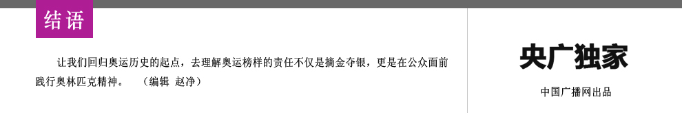 現代奧林匹克之父顧拜旦曾說:“在奧運會中……最重要的事情不是勝利,而是斗爭;不是征服,而是奮力拼搏!睙o論什么理由,都掩蓋不了這種行為完全違背了奧林匹克精神中對于公平競爭的闡釋。在包括奧運會的任何體育比賽中,金牌誠可貴,精神價更高。 |