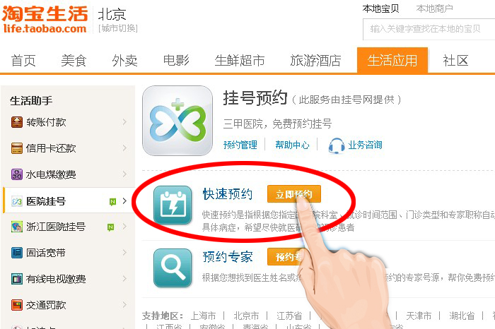 如果能夠在加上通過網絡預約掛號,是不是會覺得幸福感增加很多呢?據報道,現在全國18個省市的7萬名專家已經開通網上預約服務,其中超過6成為三甲醫院。您只要上上淘寶,動動手指,就能預約掛號了。 把掛號這件困難事兒搬到電商的地盤來解決,是不是真的像想象中的那么美那么無敵?【詳細】 接下來小編就帶您體驗一下淘寶掛號的流程: |