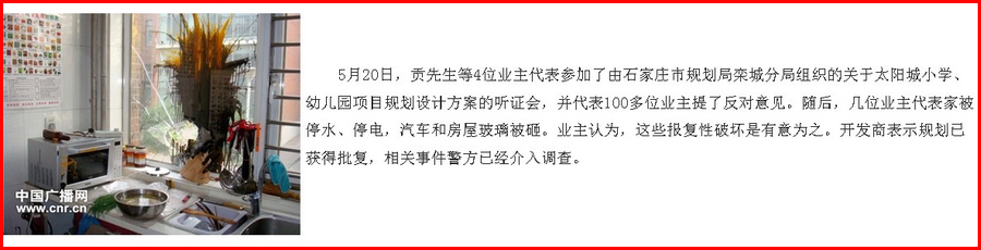 巧合的是,就在幾天之前,在河北欒城,4位業主代表參加了由石家莊市規劃局欒城分局組織的關于太陽城小學、幼兒園項目規劃設計方案的聽證會,并代表100多位業主勇敢的提了反對意見。令人驚訝的是,本該自主表達民意的舞臺,卻出現不和諧的場景。提出反對意見的業主代表慘遭報復,甚至連家都不敢回!褚馀c代表意見出現明顯不同,是代表沒當好,還是代表不敢說不好? |