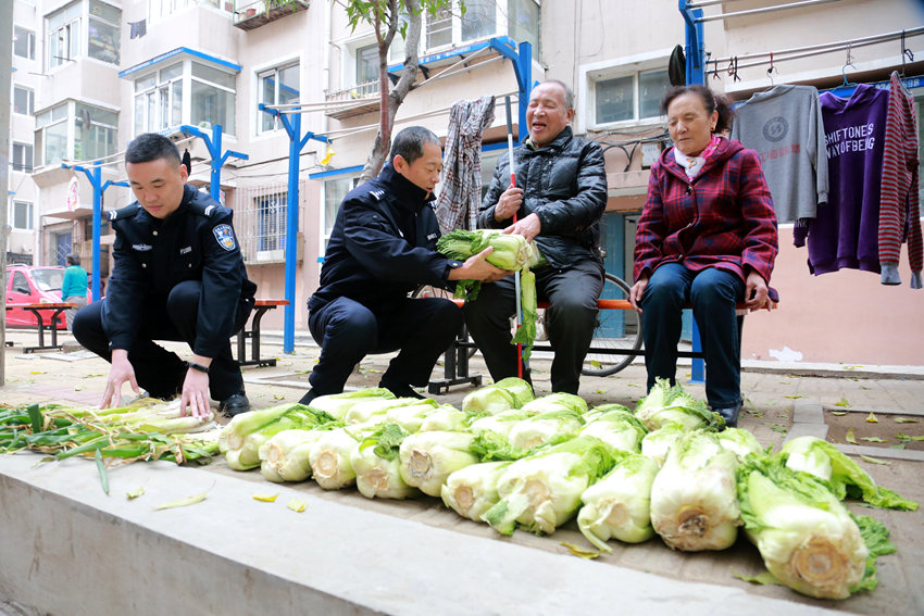 他們就是工人村派出所民警最掛念的人。在東北,每到秋冬季節家家戶戶都有買大蔥、囤白菜、腌酸菜的習慣,從買菜到晾曬再到往家里搬,每個時間節點民警們都會及時趕到。
