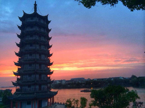 缽亭夕照回光艷,白蜆初陽染浪紅。