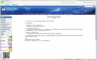 ▲日本駐華大使館官方網站此前發布的“放寬對中國人發放簽證的條件”的公告。