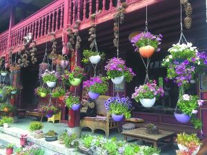 來到寂照庵,不少人感嘆這是“中國最精致的尼姑庵”。房廊上掛滿鮮花吊籃。后院有精致水景,對著一間落地窗的雅致茶室。