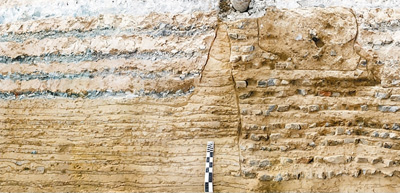 隆宗門西遺址探溝北壁。