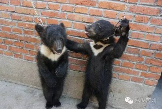 亞洲善待動物組織月中發布新聞稿表示,他們調查蘇州300個馬戲團訓練動物場地的其中10個,看到心碎的畫面,因小熊的脖子被鍊在墻上,強迫抱持站立,好訓練用后腿走路,過程長達幾個小時!