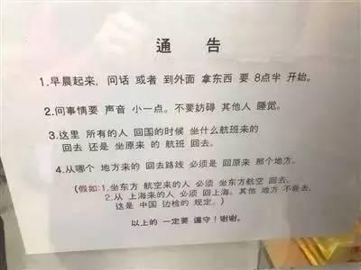 簽完字,陳先生夫婦被帶入一個設施簡陋的房間,屋外窗口貼著漢語告示。