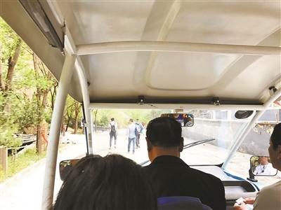 最大的問題在于,這段山路為機動車、電瓶車和行人混行,并沒有明顯的步行道,行人步行最快也需要1小時左右的時間,只能緊貼山壁行走。下午3點左右北青報記者乘坐電瓶車進入,可以同時看到最少七撥游客在路上行走。