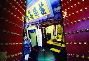 北京晨報(bào)記者注意到,景區(qū)內(nèi)還有不少屬于“仿膳”的物件。步入漪瀾堂,抬頭可見巨大的金碧輝煌的“二龍戲珠”藻井。據(jù)工作人員介紹,這里曾是仿膳的營業(yè)大廳,可以放下14張大桌,每桌坐10人。“這個(gè)藻井就是后建的,包括這些鑲嵌在柱子上的盤金龍、貼在房頂四周的‘清宮舊畫’都是后建的、后貼的,今后全部都要拆掉,恢復(fù)漪瀾堂最早的樣貌。”工作人員如是說。