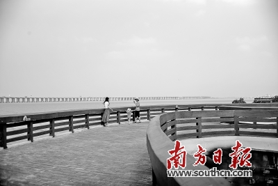 來(lái)西部看海,有哪些不同于大小梅沙的特色?記者來(lái)到不久前剛開(kāi)放的西灣紅樹(shù)林公園。不同于東部大小梅沙的碧海藍(lán)天和金色沙灘,在這里的海岸看到的是灘涂、樹(shù)木以及遠(yuǎn)山和島嶼。公園設(shè)計(jì)上也不同于東部的亞熱帶風(fēng)情,而采用了嶺南風(fēng)格和歷史文化元素。南昌涌出海口設(shè)計(jì)的步云橋,連接兩岸復(fù)原的固戍碼頭,讓人感受到昔日西鄉(xiāng)商貿(mào)文化的輝煌,沿著步云橋往北,仿佛穿越歷史的煙云,看到固戍碉樓挺立于時(shí)空之中。由于公園靠近寶安機(jī)場(chǎng),不時(shí)能看到飛機(jī)從沿江高速上飛過(guò),還有高鐵從頭頂呼嘯而過(guò),這些都成了公園的獨(dú)特景致。